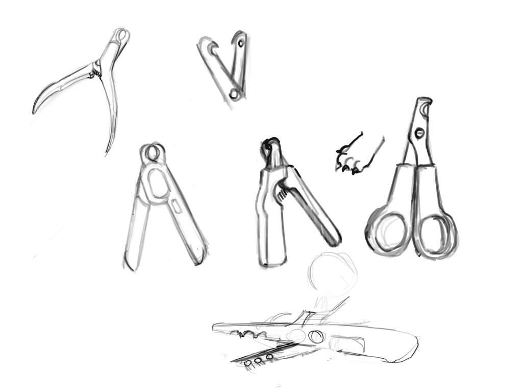 I looked for all sorts of nail clippers and confirmed that their structure is actually not much different from normal scissors, so I started practicing drawing by comparing various cat nail clippers.